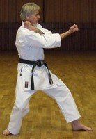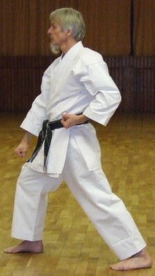 Quand j'ai commencé à pratiquer Heian Nidan, nous le faisions en position Fudo-dachi (position intermédiaire '50/50'). À ce moment-là, le fils de Maître Funakoshi, Yoshitaka Funakoshi (je pense qu'il était le quatrième fils de Maître Funakoshi) aimait pratiquer Fudo-dachi et créa l'idée de pratiquer Fudo-dachi dans les bases et même dans les Kata. Naturellement, nous pratiquons maintenant le Zenkutsu et le Kokutsu-dachi comme Maître Funakoshi l'a noté dans Karate-Do Kyohan.