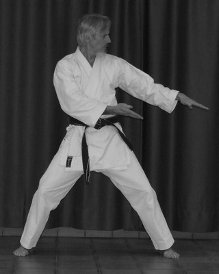 Balayage (Barai) de niveau bas (Gedan) effectué avec la partie externe de l'avant-bras (côté du petit doigt) et destiné à arrêter un coup de poing, dévier ou contrôler une attaque de pied. Je parle volontairement de « dévier » ou « contrôler » car une jambe est grandement plus puissante qu'un avant-bras et des fractures ou cassures sont toujours possibles, même pour des personnes robustes. Ce blocage peut donc être réalisé sur des attaques de niveau moyen (Chudan) et guère plus bas qu'à mi-cuisse. En dessous, vous seriez tenté de pencher le buste vers l'avant et donc de vous mettre en danger.