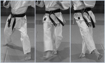 Coup de pied en vague (mouvement remontant à l'intérieur des cuisses avec la plante du pied). Cette technique, que l'on peut trouver dans Tekki-Shodan, permet le balayage d'un coup de pied porté au bas ventre. En combat rapproché, il permet, tandis que les mains sont occupées, de frapper aux genoux ou au bas ventre de l'adversaire. Le plus souvent, cette technique est effectuée en Kiba-dachi (position dite du « cavalier de fer ») et peut également correspondre à une esquive de coup de pied donné au genou ou contre un balayage. |